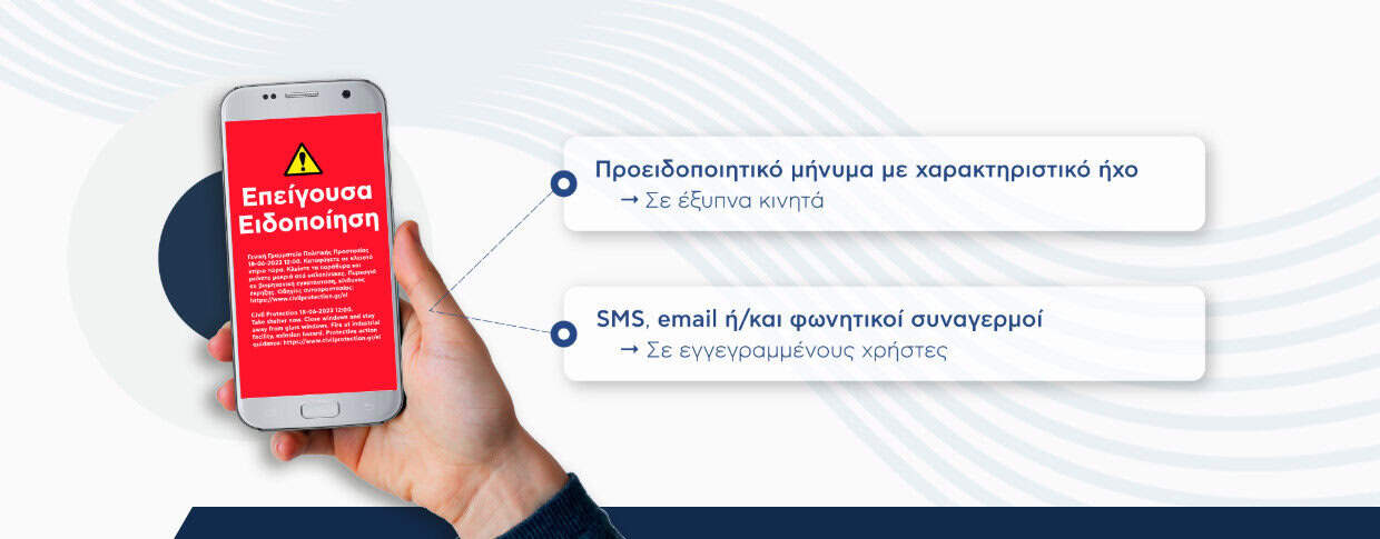 Η Γενική Γραμματεία Πολιτικής Προστασίας του Υπουργείου Κλιματικής Κρίσης και Πολιτικής Προστασίας, σε περιπτώσεις έκτακτης ανάγκης ή επικίνδυνων φαινομένων ή συμβάντων, ειδοποιεί τους πολίτες προκειμένου να διασφαλιστεί η προστασία τους.