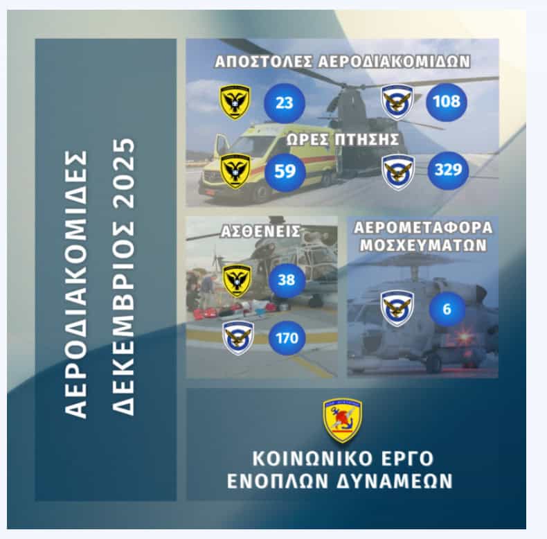 Σώματα Ασφαλείας Ενοπλες Δυνάμεις Συνδρομή των Ενόπλων Δυνάμεων σε Αεροδιακομιδές για τον μήνα Δεκέμβριο 2025