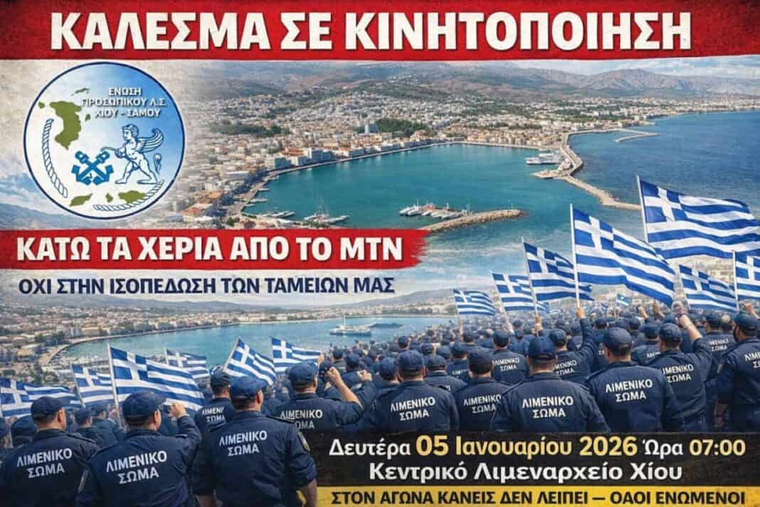 Κινητοποίηση διαμαρτυρίας έξω από το Κεντρικό Λιμεναρχείο Χίου θα πραγματοποιήσει σήμερα Δευτέρα 5/1 στις 07:00 η Ένωση Προσωπικού Λιμενικού Σώματος Χίου – Σάμου.