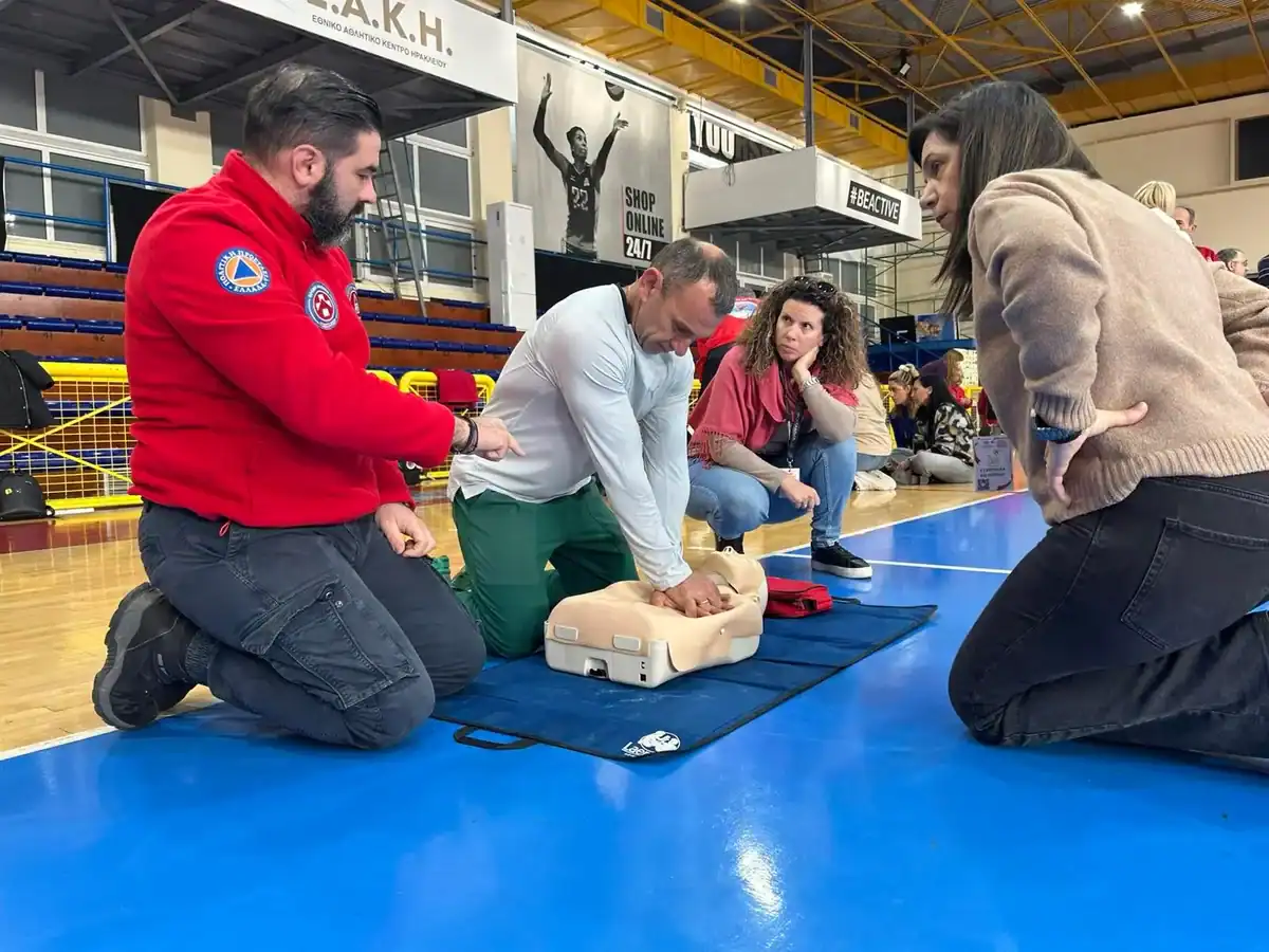 Με ιδιαίτερη επιτυχία πραγματοποιήθηκε εκπαιδευτική δράση Καρδιοπνευμονικής Αναζωογόνησης (ΚΑΡΠΑ) με τη χρήση Αυτόματου Εξωτερικού Απινιδωτή (AED) για καθηγητές μέσης εκπαίδευσης, στο Κλειστό Γυμναστήριο «Λίντο» στο Ηράκλειο.