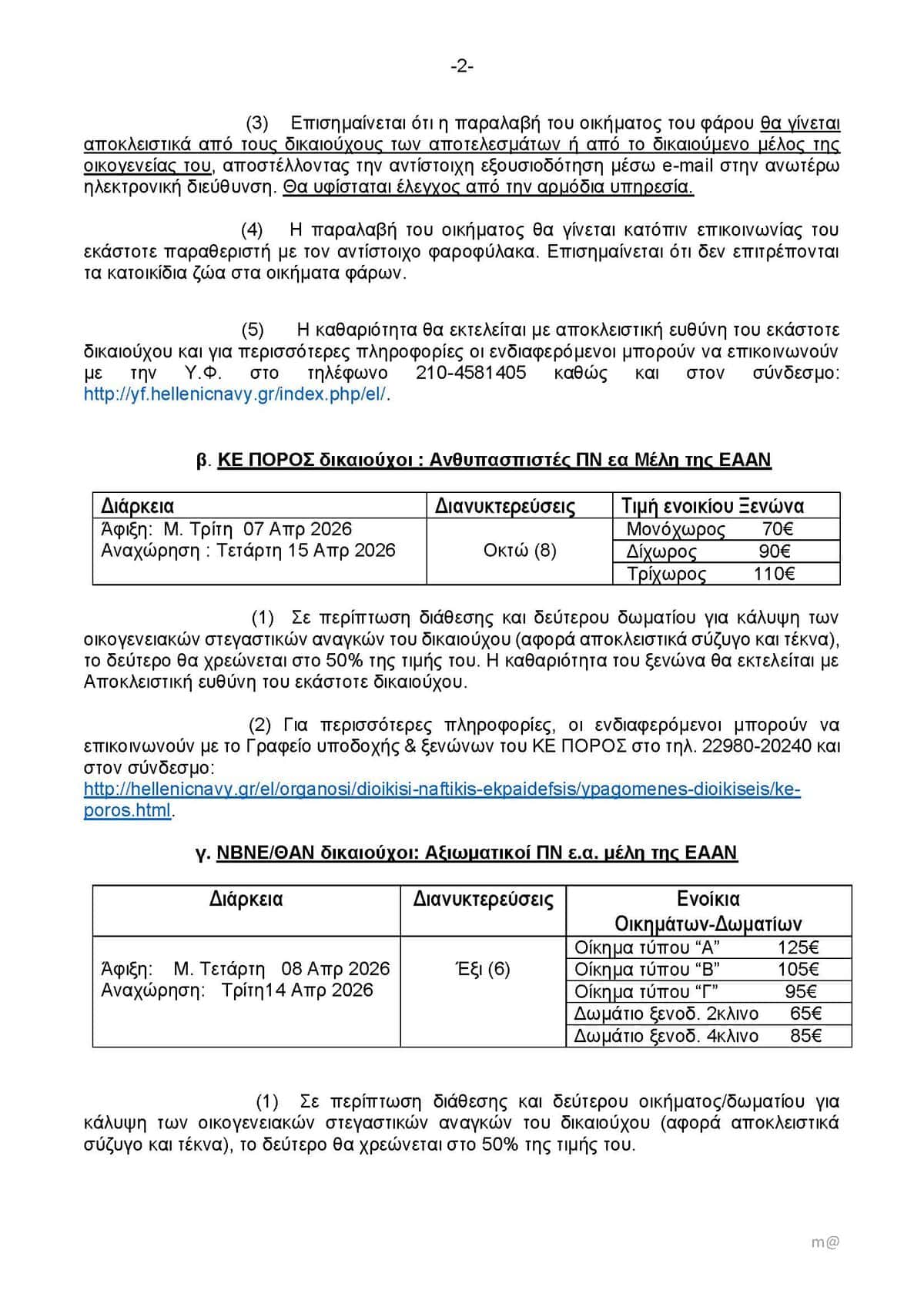 Διάθεση Φάρων – Θερέτρων – Παραθεριστικών Κέντρων κατά την Περίοδο Εορτών Πάσχα Έτους 2026