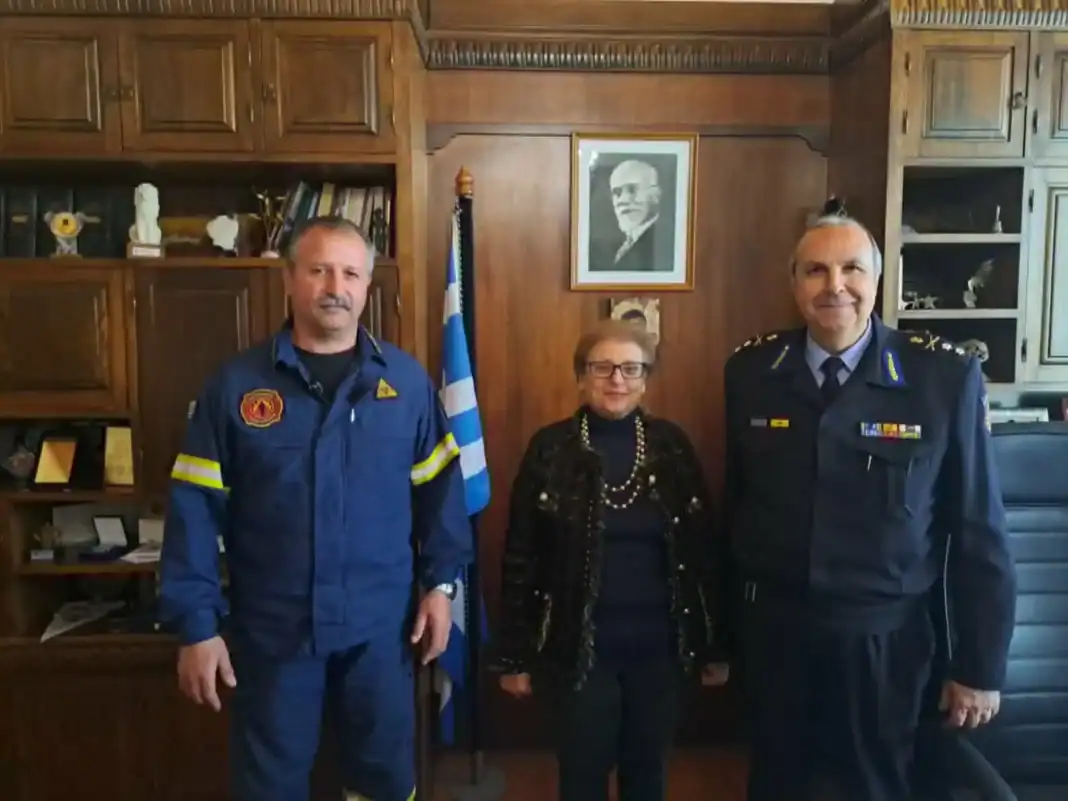 Από την πλευρά του, ο κ. Σεληνιωτάκης ευχαρίστησε την κα Λιονή για τη θερμή υποδοχή και τόνισε τη σημασία της συνεργασίας μεταξύ της Πυροσβεστικής Υπηρεσίας και της Τοπικής Αυτοδιοίκησης, ιδιαίτερα σε θέματα πρόληψης και αντιμετώπισης κινδύνων, με στόχο την προστασία της ανθρώπινης ζωής, του φυσικού περιβάλλοντος και της περιουσίας των πολιτών.