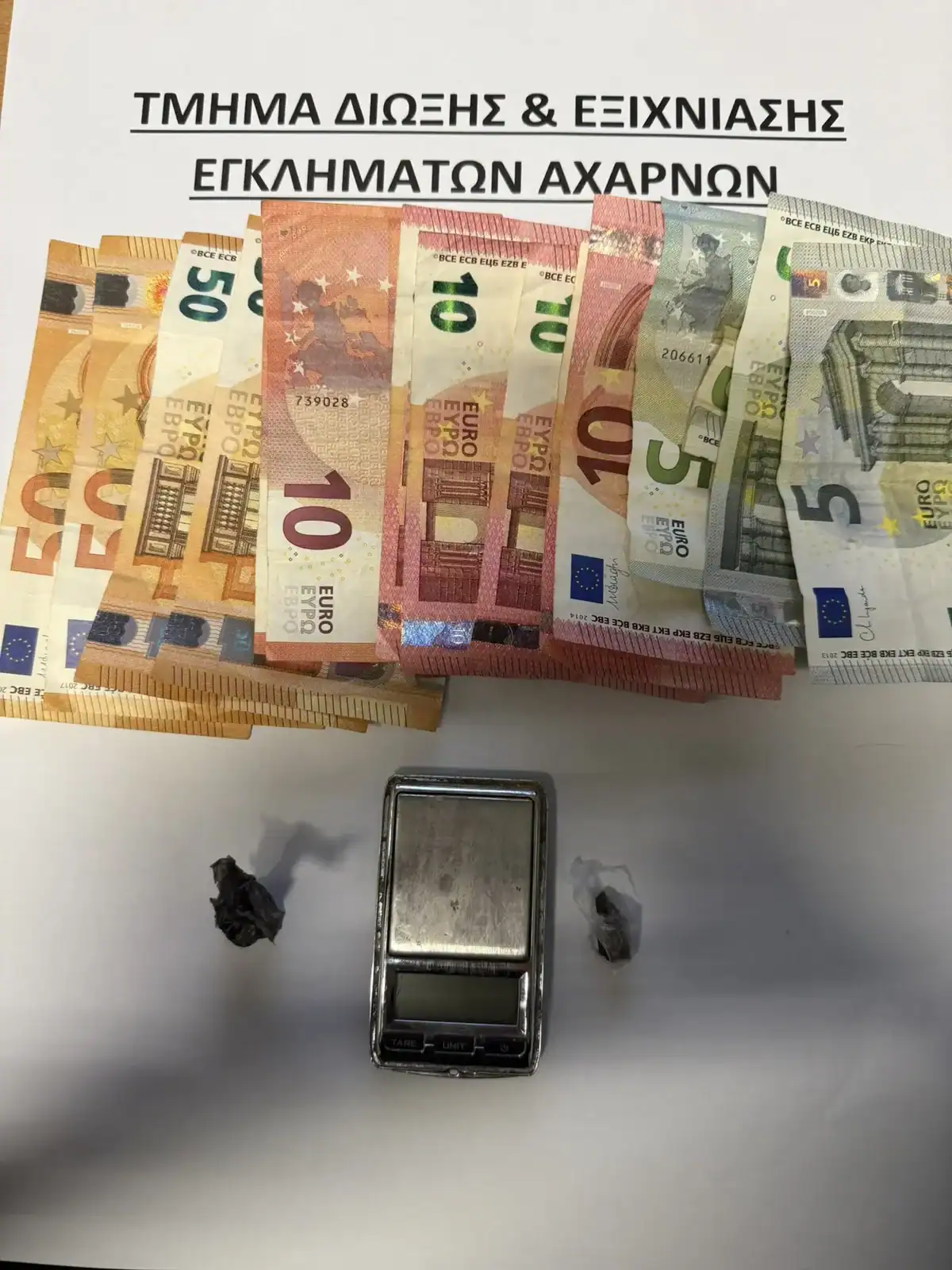 Μετά από έρευνα στην κατοχή και στην οικία της βρέθηκαν και κατασχέθηκαν ζυγαριά ακριβείας και το χρηματικό ποσό των 290 ευρώ.