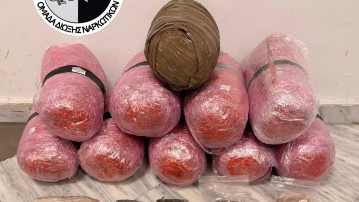 Σε έρευνα που έγινε στο σπίτι του, με τη συνδρομή του αστυνομικού σκύλου «Vector», κατασχέθηκαν 11 κιλά ακατέργαστης κάνναβης, 2 κιλά ηρωίνης, 1 κιλό κατεργασμένης κάνναβης, δύο ζυγαριές ακριβείας και κινητά τηλέφωνα.