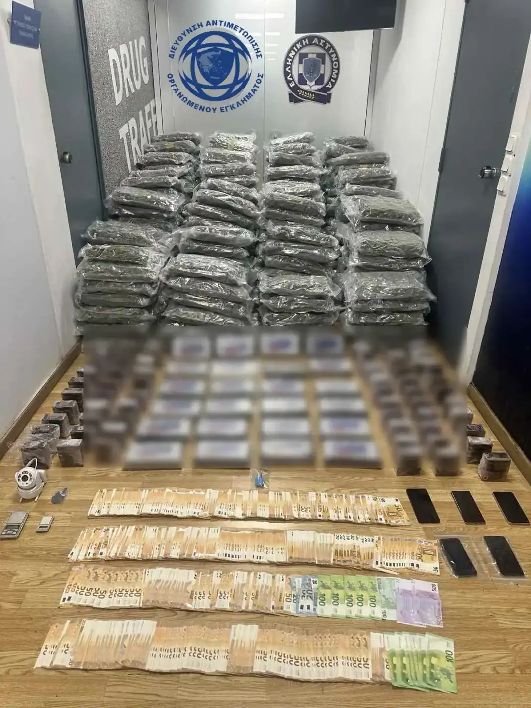 Κατασχέθηκαν πάνω από 26  κιλά ηρωίνης, περισσότερα από  360  κιλά κατεργασμένης και ακατέργαστης κάνναβης, πλαστά δελτία ταυτότητας και άδειες οδήγησης καθώς και μήτρες σφραγίδας
