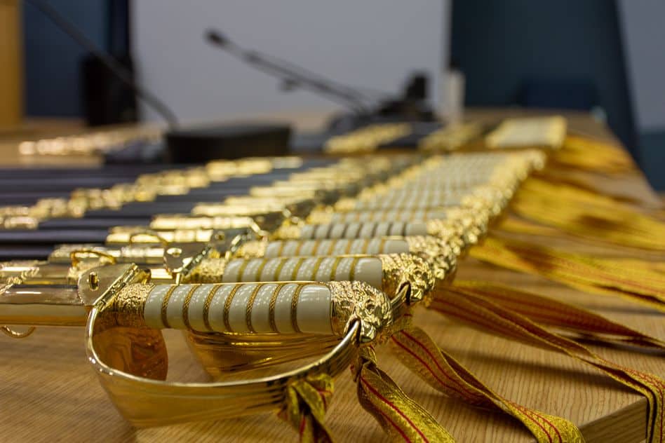 5. Σε περίπτωση αδυναμίας για λόγους υγείας ή ανωτέρας βίας της φυσικής παρουσίας των δικαιούχων στην τελετή, δύνανται με νόμιμη εξουσιοδότηση (ψηφιακή μέσω gov.gr, ή φυσική θεωρημένη από ΚΕΠ / Αστυνομία), να εξουσιοδοτήσουν συγγενικό ή φιλικό τους πρόσωπο για την παραλαβή του δικαιούμενου ξίφους την ασφαλή μεταφορά του και του αποδεικτικού επίδοσης από την ΕΑΑΝ.