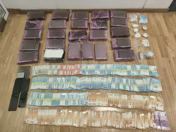 Οι έρευνες συνεχίστηκαν σε καφετέρια ιδιοκτησίας του 29χρονου, στην οικία του 21χρονου, καθώς και σε άλλη οικία-αποθήκη (καβάτζα) που χρησιμοποιούσαν για τη φύλαξη των ναρκωτικών. Εκεί, οι αστυνομικοί βρέθηκαν μπροστά σε ένα εντυπωσιακό εύρημα, καθώς οι δύο άνδρες κατείχαν από κοινού ποσότητα κοκαΐνης μικτού βάρους 26 κιλών και 228 γραμμαρίων. Επιπλέον, κατασχέθηκαν κατεργασμένη κάνναβη (σοκολάτα) βάρους 80,9 γραμμαρίων και ακατέργαστη κάνναβη βάρους 40,9 γραμμαρίων.