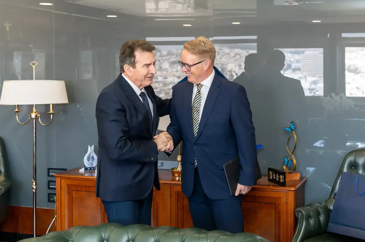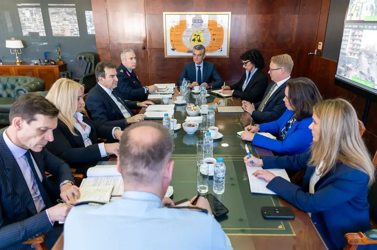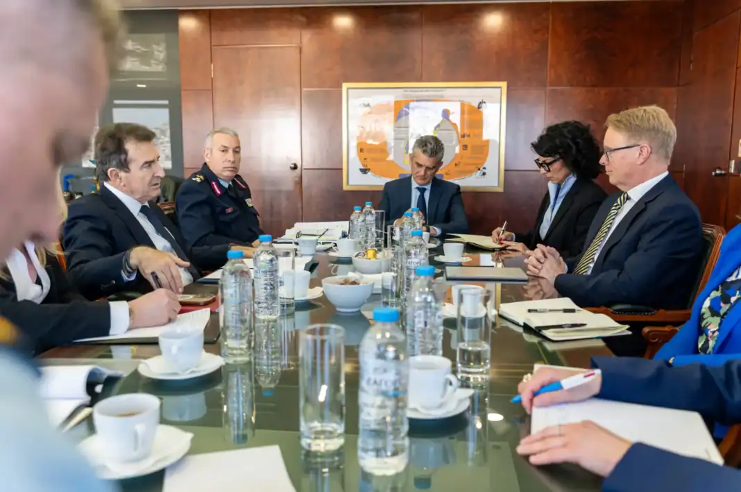 Η ενίσχυση της ήδη στενής συνεργασίας για την προστασία των εξωτερικών συνόρων της Ευρωπαϊκής Ένωσης, επιβεβαιώθηκε για άλλη μια φορά στη νέα συνάντηση που είχε ο Υπουργός Προστασίας του Πολίτη, Μιχάλης Χρυσοχοΐδης με τον Εκτελεστικό Διευθυντή του Frontex,  Χανς Λέιτενς (Hans Leijtens), παρουσία του Γενικού Γραμματέα Δημόσιας Τάξης, Παναγιώτη Στάθη και του Αρχηγού της ΕΛ.ΑΣ, Αντιστρατήγου Δημητρίου Μάλλιου .