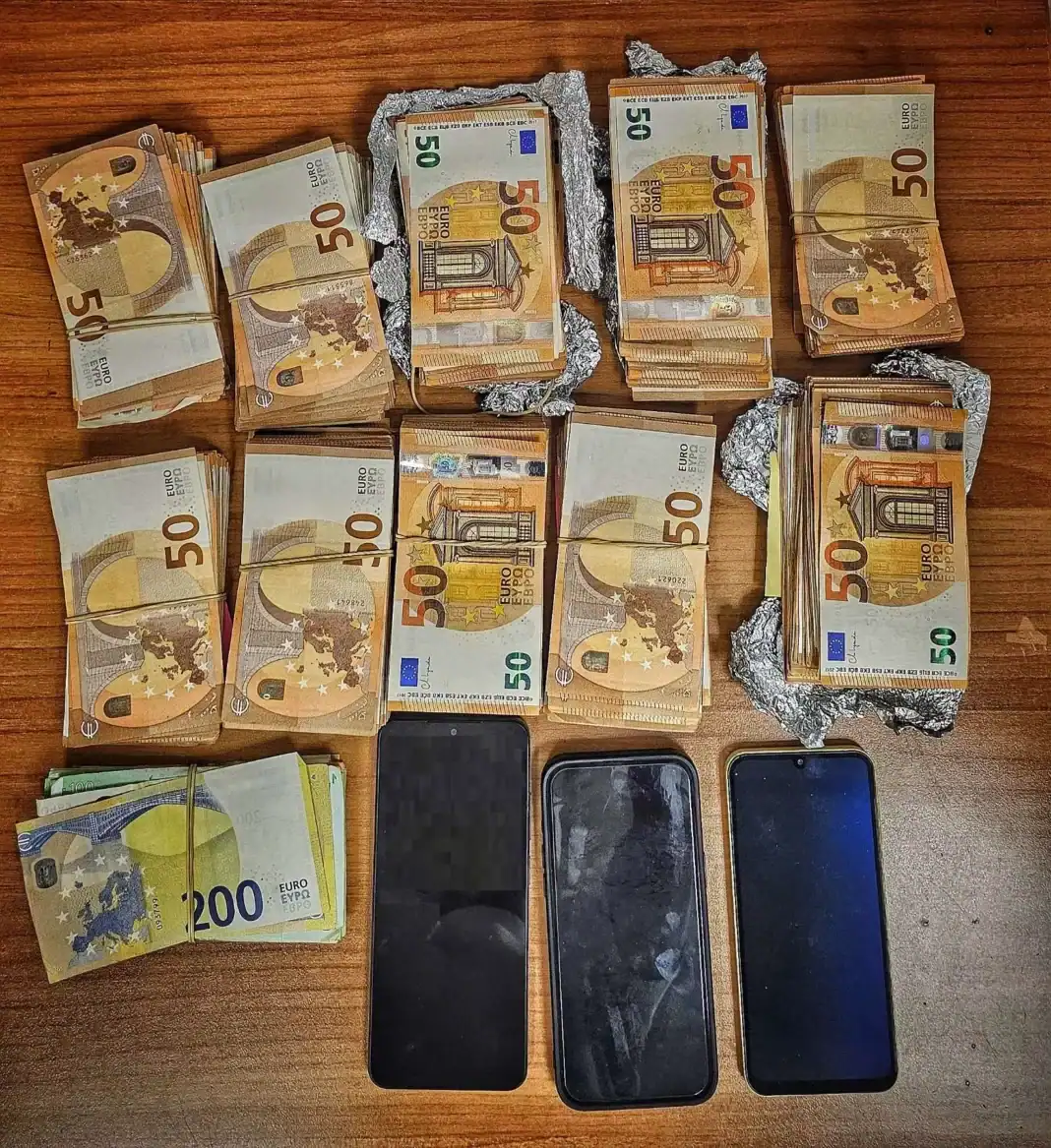 Μετά από συντονισμένες ενέργειες των αστυνομικών, εντοπίστηκαν τα προαναφερόμενα άτομα να επιβαίνουν σε όχημα και σε έρευνα του οχήματος βρέθηκε καλά κρυμμένο το χρηματικό ποσό των 54.350 ευρώ, το οποίο και αποδόθηκε στην παθούσα.