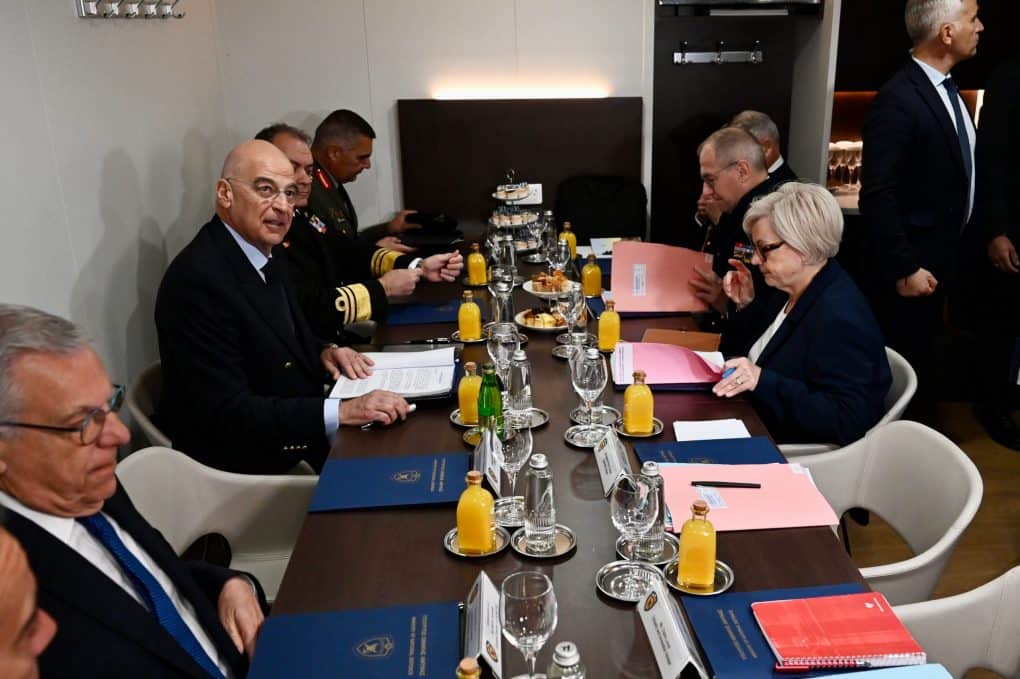 Η περαιτέρω εμβάθυνση της αμυντικής συνεργασίας μεταξύ της Ελλάδας και της Γαλλίας, καθώς και οι εξελίξεις ασφάλειας στην ευρύτερη περιοχή, συζητήθηκαν στη  συνάντηση του υπουργού Εθνικής ‘Αμυνας, Νίκου Δένδια, με την υπουργό Ενόπλων Δυνάμεων της Γαλλίας, Κατρίν Βοτρέν, επί της φρεγάτας ΚΙΜΩΝ, το Σάββατο 25-4-2026, στο πλαίσιο της επίσκεψης του Προέδρου της Γαλλικής Δημοκρατίας, Εμανουέλ Μακρόν, στην Ελλάδα. Στη συνάντηση συμμετείχαν, επίσης, ο αρχηγός ΓΕΕΘΑ, στρατηγός Δημήτριος Χούπης, ο αρχηγός ΓΕΝ, αντιναύαρχος Δημήτριος – Ελευθέριος Κατάρας ΠΝ και αντιπροσωπείες των δύο πλευρών.