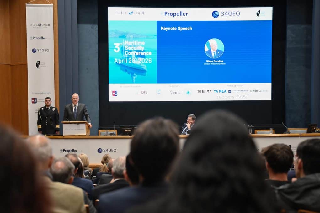 Ο Υπουργός Εθνικής Άμυνας, Νίκος Δένδιας, συμμετείχε χθες Τρίτη 28 Απριλίου 2026, ως κεντρικός ομιλητής, στο 3ο Διεθνές Συνέδριο Θαλάσσιας Ασφάλειας, το οποίο πραγματοποιείται στο Ίδρυμα Ευγενίδου.