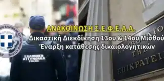 Σ.Ε.Φ.Ε.Α.Α.: Δικαστική Διεκδίκηση 13ου & 14ου Μισθού – Έναρξη κατάθεσης δικαιολογητικών