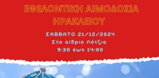 Εθελοντική αιμοδοσία στο Ηράκλειο Κρήτης το Σάββατο 21-12-2024