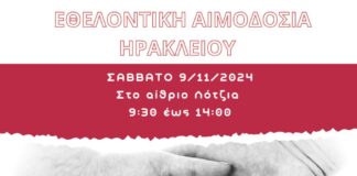 Εθελοντική αιμοδοσία στο Ηράκλειο Κρήτης το Σάββατο 9-11-2024