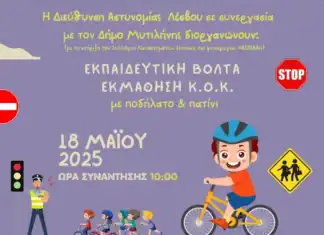 Ανακοινώνεται ότι, η Διεύθυνση Αστυνομίας Λέσβου και ο Δήμος Μυτιλήνης συνδιοργανώνουν, με τη στήριξη του Συλλόγου Καταστημάτων Εστίασης και Ψυχαγωγίας «Ασπίδα», εκπαιδευτική βόλτα «Pedal-οδρομία»,...