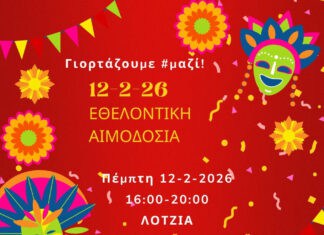 Εορταστική εθελοντική αιμοδοσία σήμερα Τσικνοπέμπτη στο Ηράκλειο Κρήτης