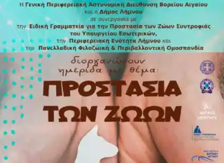 Ανακοινώνεται ότι, η Γενική Περιφερειακή Αστυνομική Διεύθυνση Βορείου Αιγαίου και ο Δήμος Λήμνου, σε συνεργασία με την Ειδική Γραμματεία για την Προστασία των Ζώων...