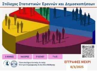 Γίνετε ειδικοί στις Στατιστικές Έρευνες & Δημοσκοπήσεις! Κύρια χαρακτηριστικά προγράμματος: 100% εξ αποστάσεως 140 ώρες 3 μήνες 7 διδακτικές ενότητες Πανεπιστημιακή Πιστοποίηση με 17 μονάδες ECVET Σε ποιους απευθύνεται:Απόφοιτους Πανεπιστημίου/ΤΕΙ (ημεδαπής...