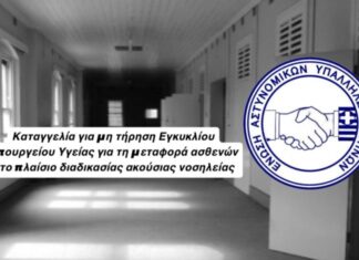 Μη τήρηση Εγκυκλίου Υπουργείου Υγείας για την μεταφορά ασθενών στο πλαίσιο...
