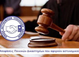 Ε.ΑΣ.Υ.Α.: Αποφάσεις Ποινικών Δικαστηρίων που αφορούν αστυνομικούς