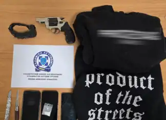 Κατασχέθηκαν, μεταξύ άλλων, φυσίγγια, μαχαίρι, κροτίδα, καπνογόνο, αεροβόλο πιστόλι, όχημα, 25.695 ευρώ και 10.500 δολάρια