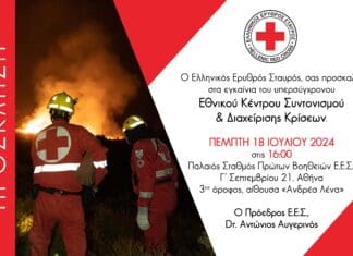 Ο Ελληνικός Ερυθρός Σταυρός (Ε.Ε.Σ.), την Πέμπτη 18 Ιουλίου και ώρα 4 μ.μ., εγκαινιάζει το υπερσύγχρονο Εθνικό Κέντρο Συντονισμού και Διαχείρισης Κρίσεων του Ε.Ε.Σ.,...