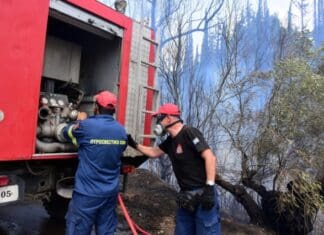 Οι πυροσβεστικές δυνάμεις αντιμετωπίζουν...
