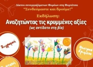 Το Δίκτυο Συνεργαζόμενων φορέων στην Φορτέτσα διοργανώνει εκδήλωση με θέμα ‘Αναζητώντας τις κρυμμένες αξίες ( ως αντίδοτο στη βία) την Πέμπτη 13 Ιουνίου στην...