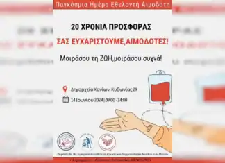 Εθελοντική αιμοδοσία στο Δημαρχείο Χανίων για τα 20 χρόνια εορτασμού της...