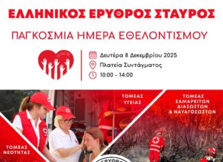 Ο Ελληνικός Ερυθρός Σταυρός τιμά την Παγκόσμια Ημέρα Εθελοντισμού διοργανώνοντας μεγάλη εορταστική εκδήλωση στην Πλατεία Συντάγματος την Δευτέρα 8 Δεκεμβρίου 2025 και ώρες 10:00...