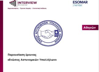 Η Ένωση Αστυνομικών Υπαλλήλων Αθηνών παρουσιάζει έρευνα- δημοσκόπηση στην οποία έλαβαν μέρος 1.201 αστυνομικοί που υπηρετούν...