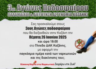 Η Δ/νση Αστυνομίας Κοζάνης, διοργανώνει Τουρνουά Ποδοσφαίρου, με κεντρικό μήνυμα «Κόκκινη...