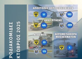 Infographic με τη Συνδρομή των Ενόπλων Δυνάμεων σε Αεροδιακομιδές για τον μήνα Οκτώβριο 2025.
